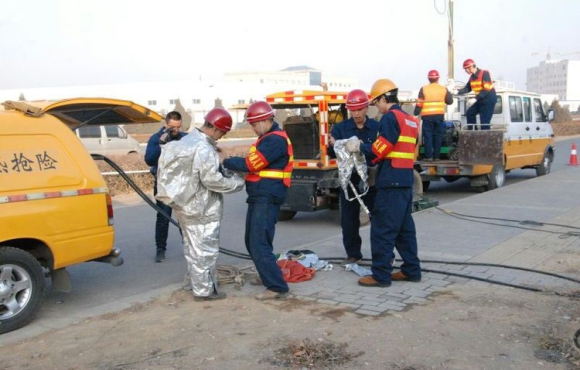 檢修人員穿著隔熱服準(zhǔn)備下井檢修