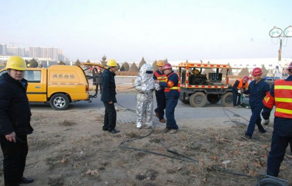 下午3:40分,長(zhǎng)治熱力搶修隊(duì)攜帶所需設(shè)備到達(dá)事故現(xiàn)場(chǎng)